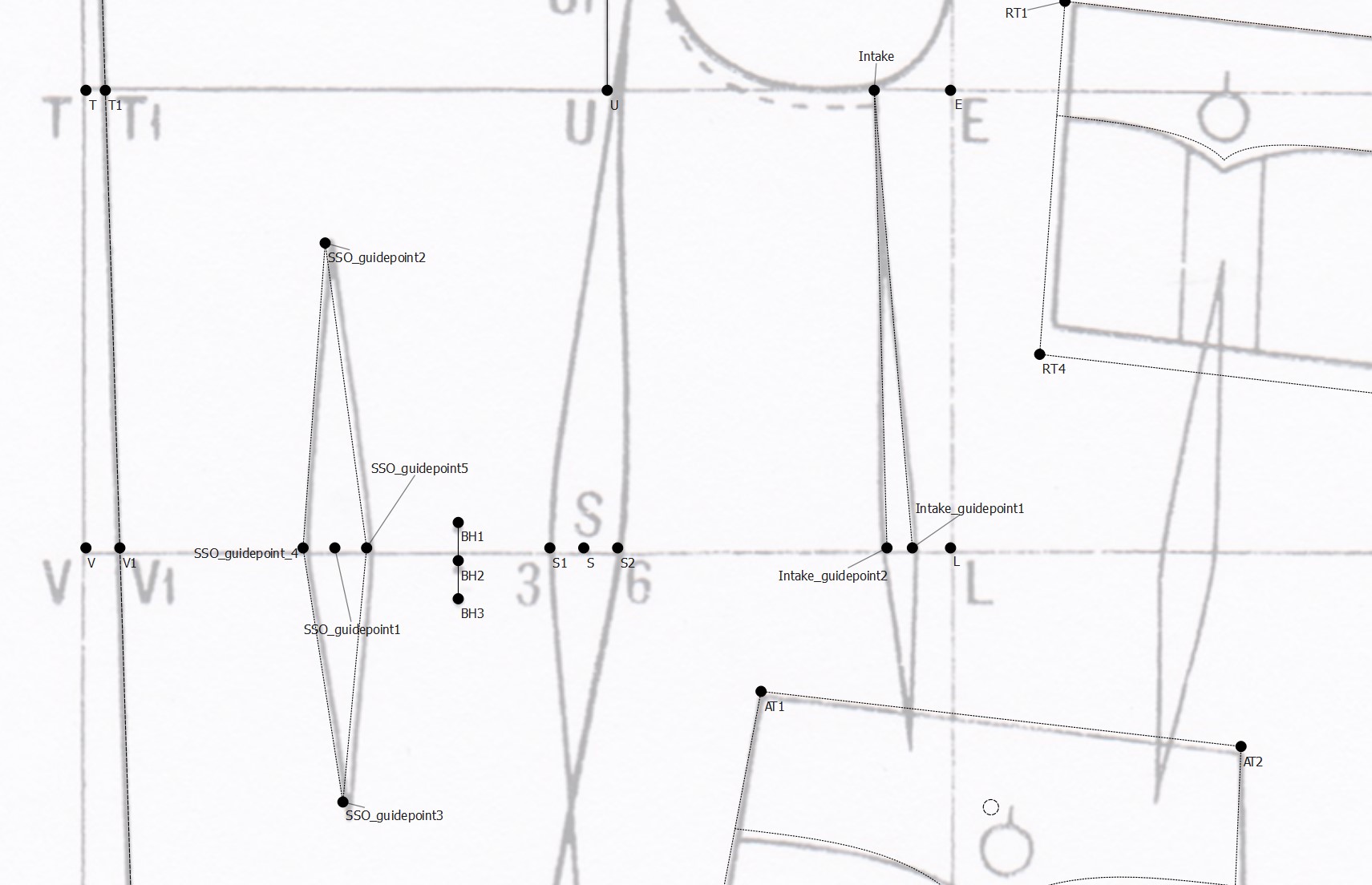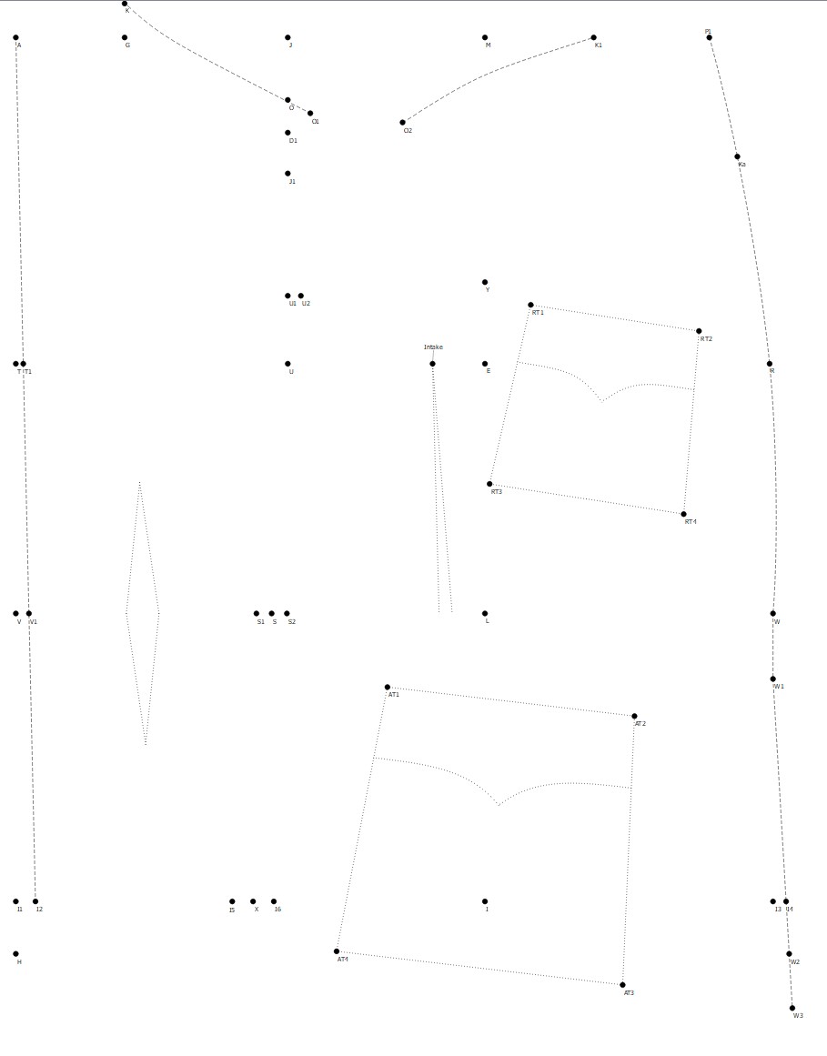 Here’s where I am currently with the draft, made to my best understanding of the system. These are all the points and lines that are explained in the drafting guide - rest of it is done “the usual way” or use “the usual measurements”.