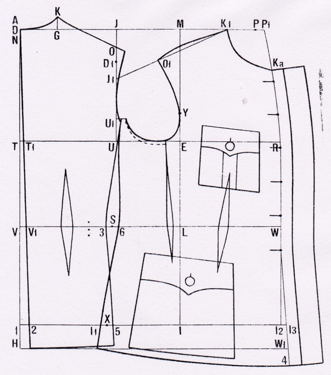 They both use a 1928 domestic “tailors drafting manual” system as a basis, which is a domestic system developed in order to harmonize sharing patterns between professionals. The issue is though that the system also leaves a lot of the explanations out, simply stating “draft this the usual way”. I’ve even talked to a tailor who specializes in old garments and he had no answers, he just uses his 40 years of experience to get past these points - experience I don’t have. On top of all this, the system includes simple seam allowance of unknown measure. Meaning, from experience with previous garments of the same system, I’ve figured there’s about 8 mm to 10 mm seam allowance included in the seams that attach to other parts if you’re doing open seams. Many of these patterns how ever require felled seams or welted seams, so you end up having to add extra seam allowance to achieve comfortable results.
