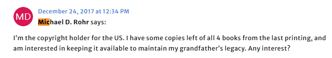 Ah… Ok. Most all the covers I see of his books are M. Rohr… I can the reason for a mixup since the 1st name “Mayer” is not common.