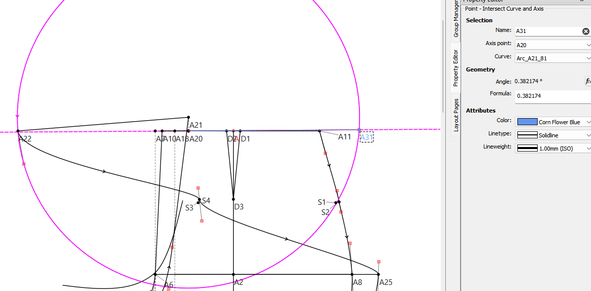 That being said… a better option at the moment (since the axis has direction) woud be to create an arc with the waist_cir / + 4 radius, then use use Point - Intersect Arc and Axis tool, with the axis angle of Line_A20_A11. I know it’s 2 tools, but it won’t have the current issue.