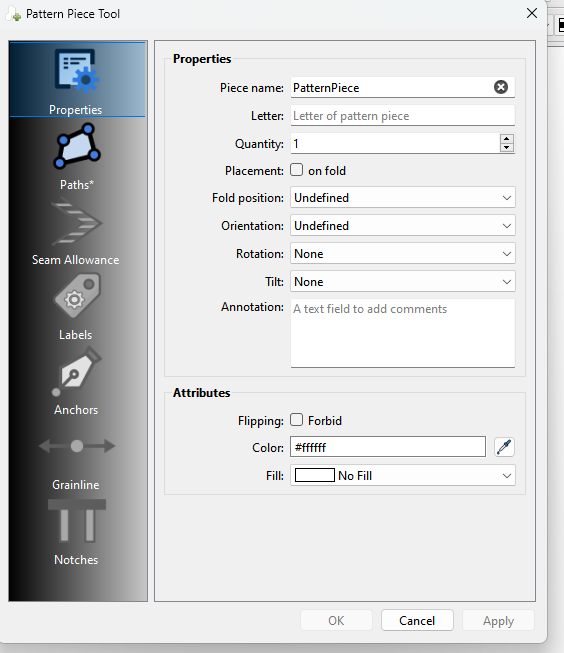 I’m a little confused as to whether you are creating draft blocks (in Seamly these are different “drawing boards” on which to draft different parts of the pattern) or are you creating pattern pieces (which are parts of the pattern that you wish to print for sewing). I’m assuming that it is pattern pieces.