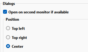 I am using the AppImage with Ubuntu and a dual screen display. I have set the preference to open the dialogue on the 2nd display. This works fine when on the draft mode.