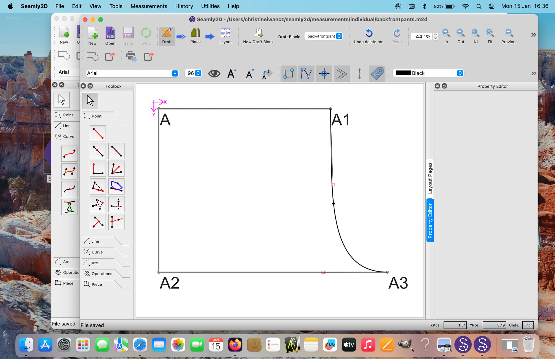 Click on the tool and then select all of the nodes and curves that make up the pattern piece: