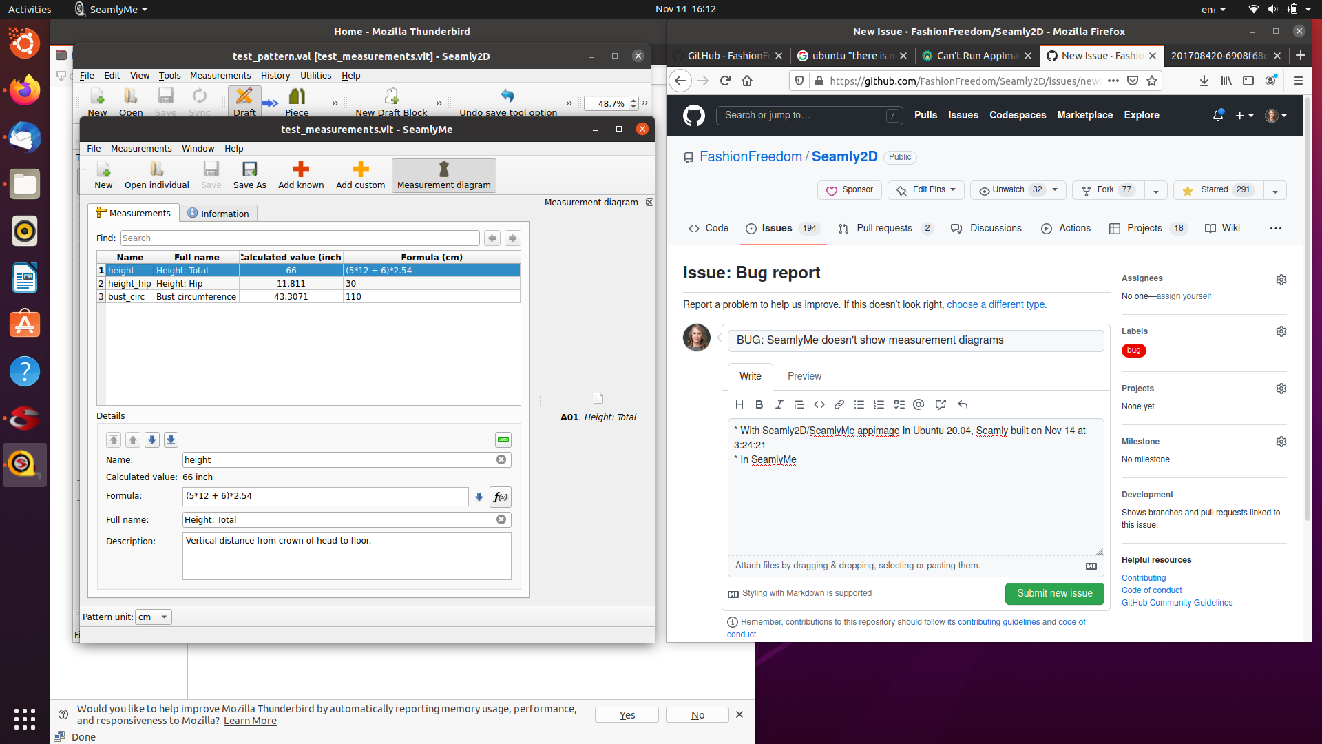 DeepL: Comme vous pouvez le voir dans ce fil de discussion, j’avais le même problème en utilisant une version récente sur Ubuntu 18, mais je n’avais pas le problème sur une [ancienne version] (Release Weekly 2021-08-300040 · FashionFreedom/Seamly2D · GitHub), ou sur Ubuntu 20. Depuis, ayant mis à jour mon Ubuntu 18 vers Ubuntu 22, j’ai constaté que la nouvelle AppImage ne fonctionne pas du tout sur Ubuntu 22, mais qu’elle peut toujours être installée à partir de la source avec succès. J’en ai parlé dans le sujet Building Seamly on Ubuntu 22.