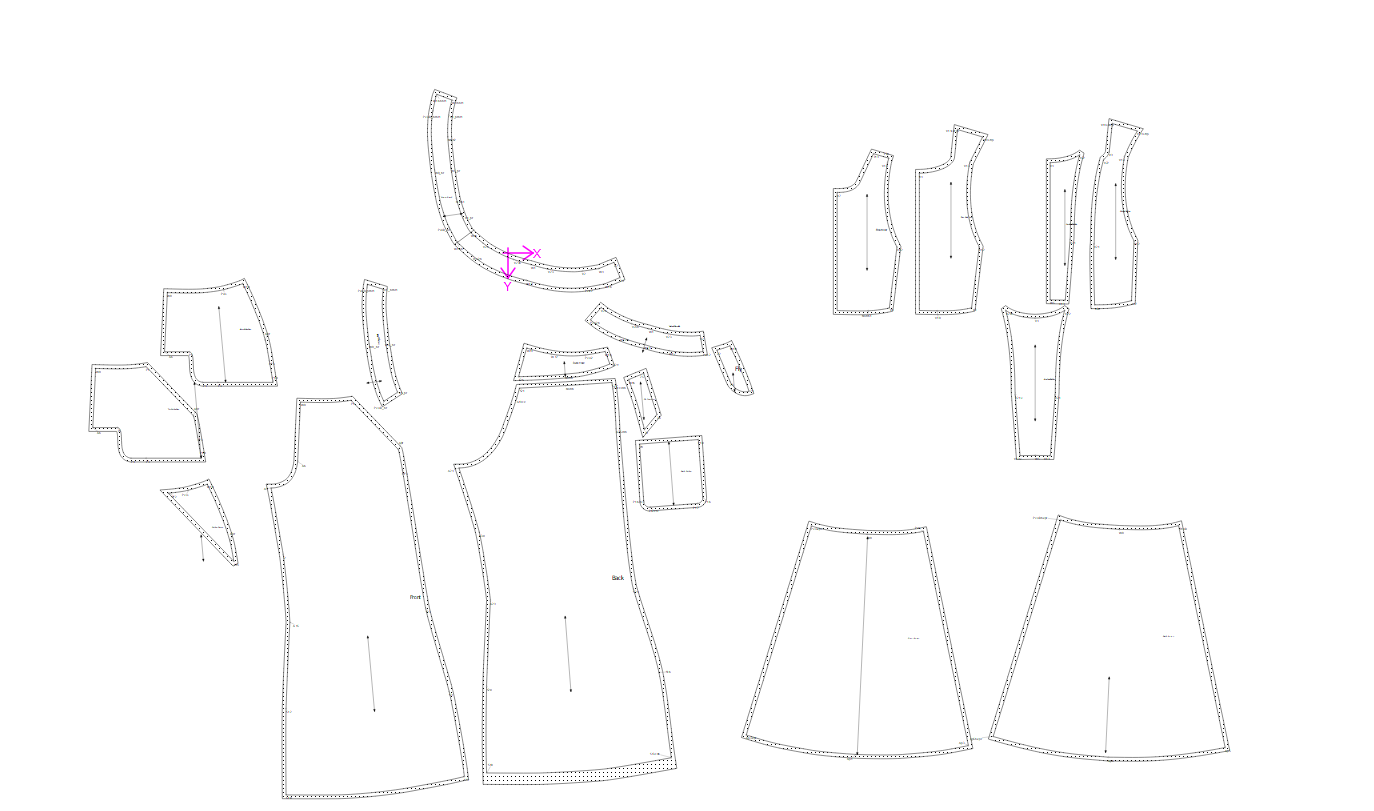 I’ve been dilly dallying across a few projects, but I finally finished a full pattern up to the point of having them all in piece mode. I still have to change some seam allowances, add my notches, etc… but they’re all there in piece mode with the correct grainline (That took quite a while).