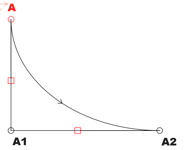 So just what is the value of the factor? Well without getting into the math it’s an approx for bezier curves and can be defined as 0.551915. So in other words the length of control point A = Line_A_A1 * 0.551915… so basically 55% or a little over 1/2 the length. So again, what this accomplishes is a smooth transition for whatever is before and after this curve, and regardless of the “size” it will always be proportional.