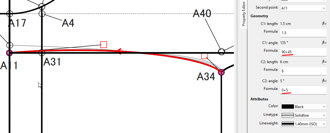 Due to the shape resulting from the CP length and angles, it’s creating an acute angle at point A34… it needs to be obtuse, or it’s going to square off the corner.