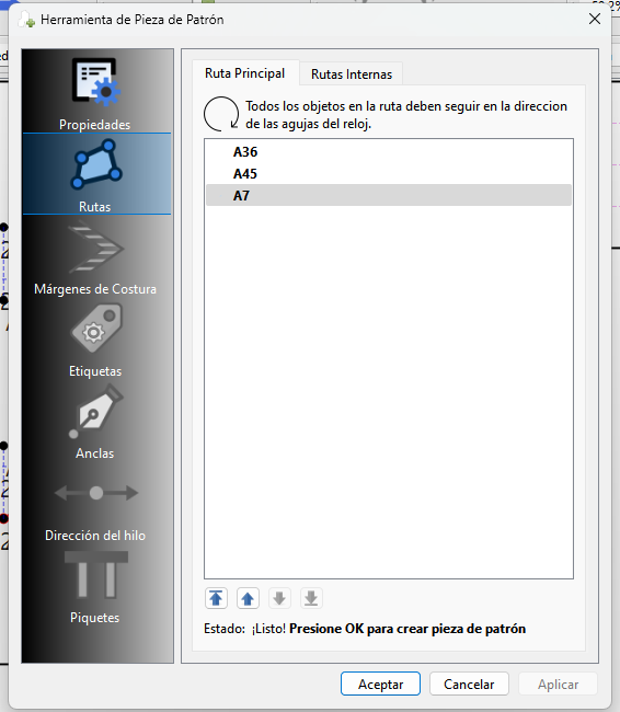 cuando creo la segunda pieza de patrón al finalizar no se me activa el botón aceptar. Sólo se me activa la tecla rechazar. Por qué?