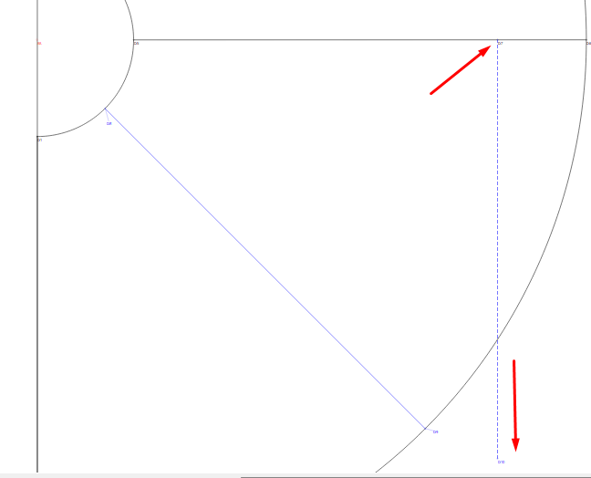 Then I thought… What would be the neatest way to do this and decided that a center seam would be the neatest, placed a point at 1/4 of the arc on both the waist & hem arc’s, checked that it fitted onto the 44" & drafted the pattern piece because I could see that it would fit comfortably into the 44":
