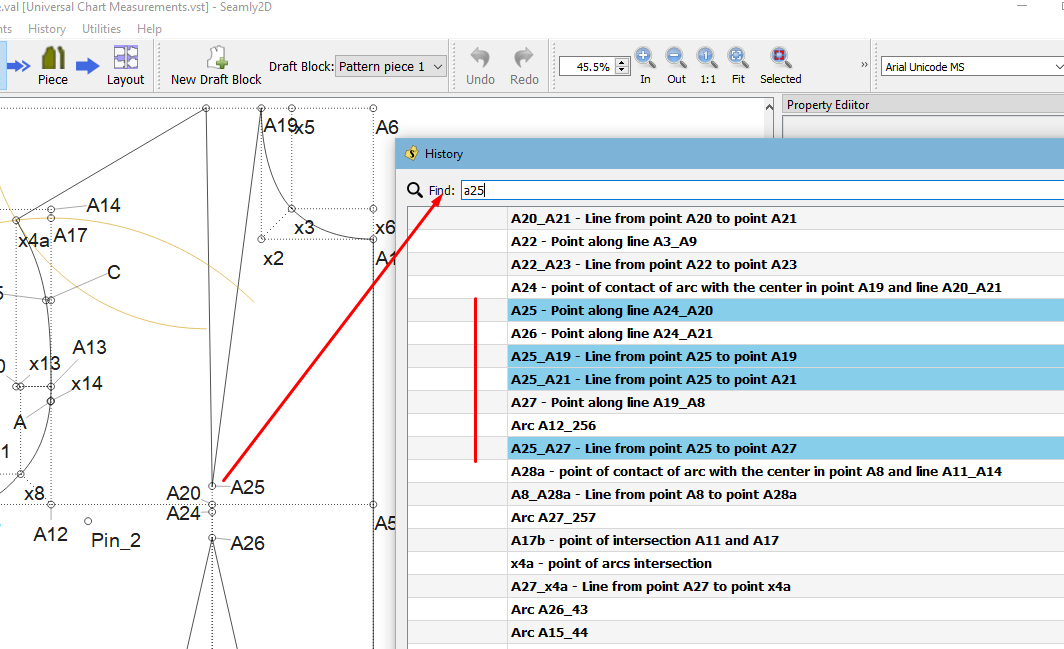 I’ve just found my self trying to delete a curve in a pattern that I’ve made and the delete button isn’t clickable, so I guess something is based on it. Therefore it came to mind that it might be a very comfortable option if there was a window where you can see all the connections from points or lines they’re linked to. I know that you can see the reference point in the property editor (which btw has got a spelling in the Version 5.15.2.) but I mean the other way around. Instead of seeing where its based on you can also see which point is based on that point or line (seeing all the linked points). This could be very practical because I sometimes find it quite difficult to remember which point has been created on which other, as you have to go backwards to delete something.