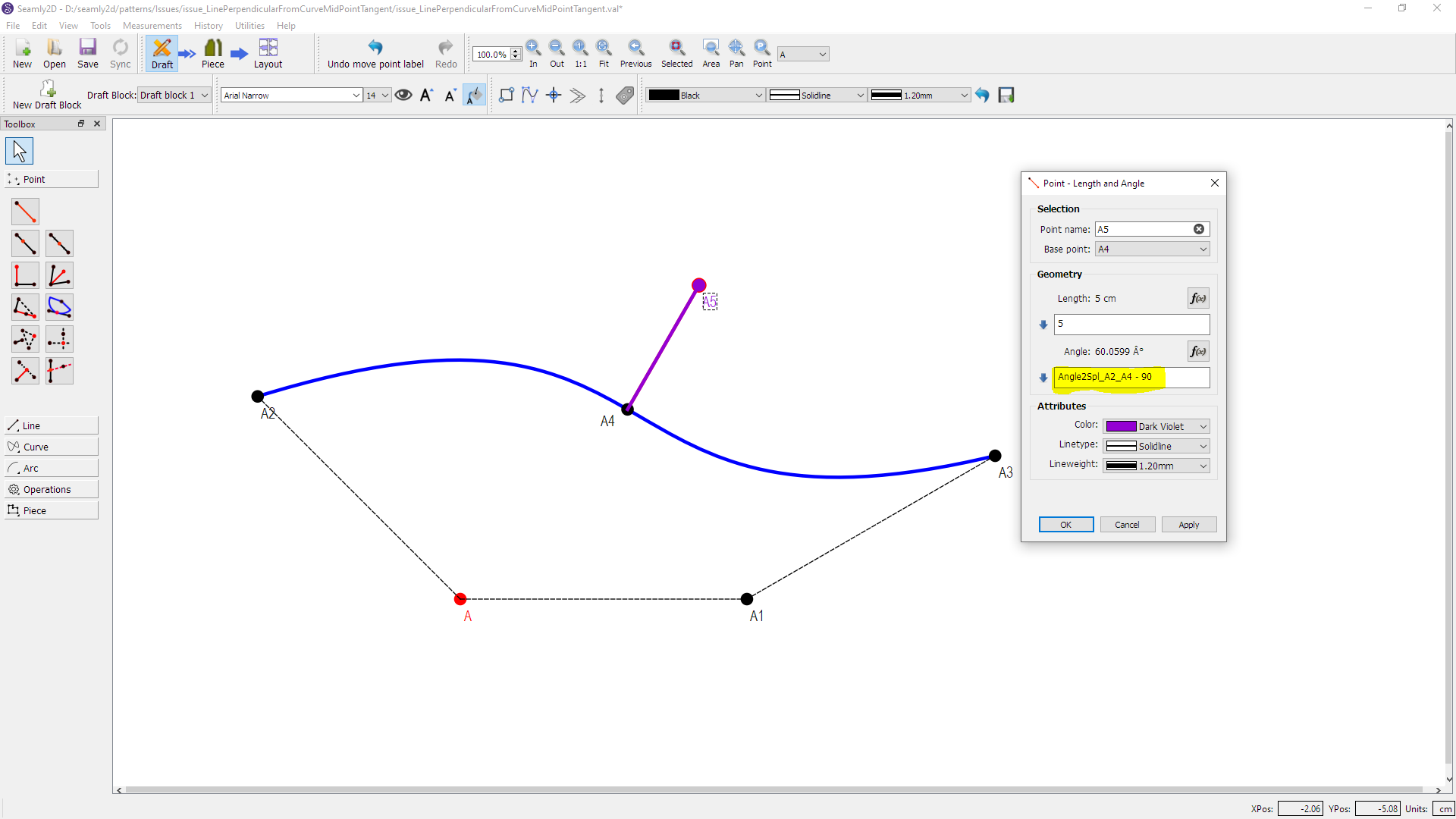Neat, but in the OP case A5 already exists, & A4 has to dynamically shift to keep A5 at the perpendicular.