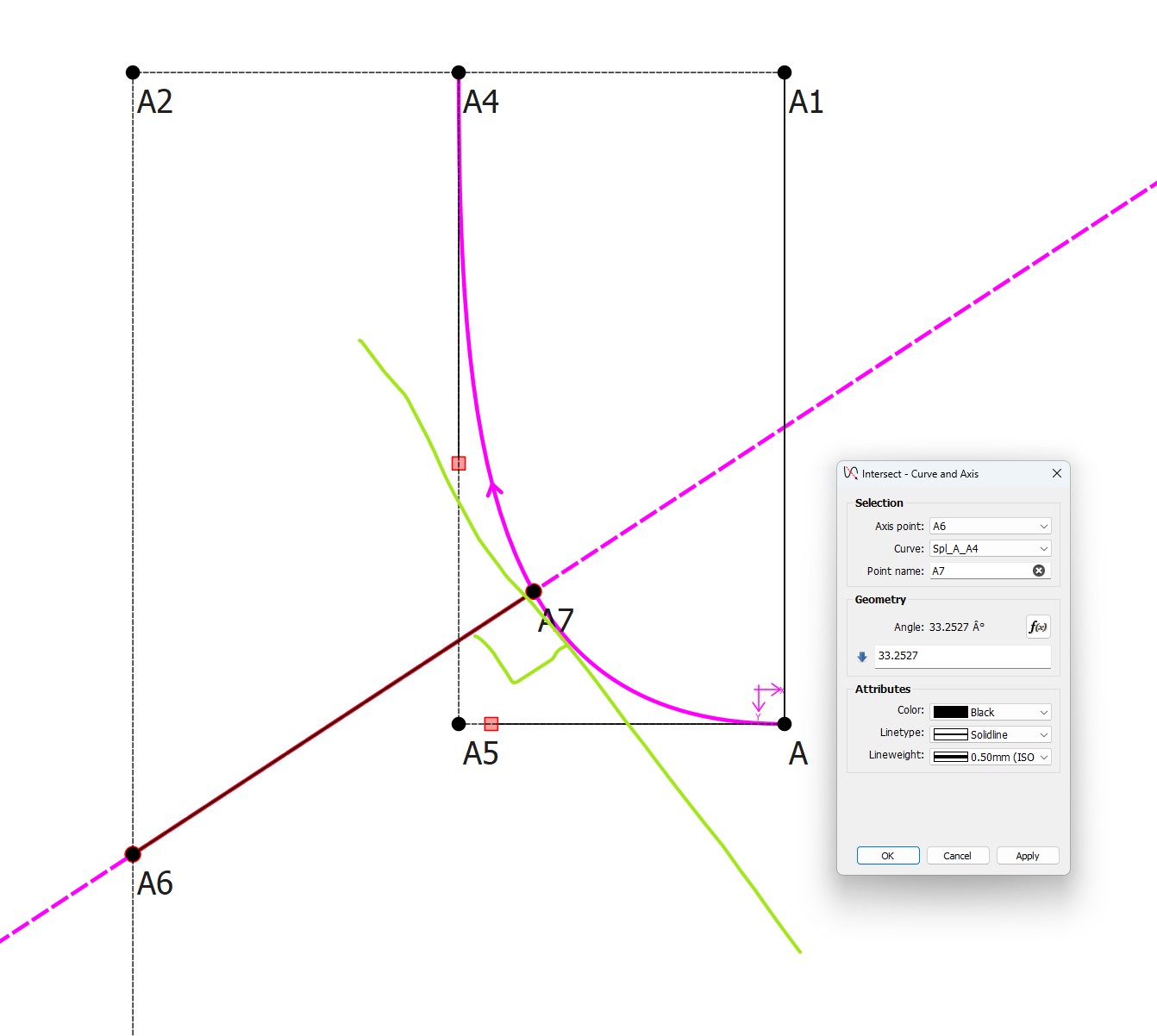 Thank you for the quick reply, Yes, use A6 as the axis point.The Muller and Sohn book asks you to rotate around a pivot point which is the top of the darts and over lap at the arm hole by 5mm along an axis perpendicualr to the tangent of the armhole curve. It’s basically the last step of the draft, but as I want to project my patterns, I need a way to do it… Happy to use the eye ball technique for now, but a more precise solution would be better. I’d thought my way round the shortest distance but haven’t found a solution. I’ve tried using arcs, pythagoras, messed around with loads of the tools. But seem to come up short, as I can’t define the curve as the place to locate the point. The only tool I’ve discovered that does this is the “intersect - curve and axis” tool, but I’d need to define the angle and I can’t figure out how to do that. If you come across anything please let me know.