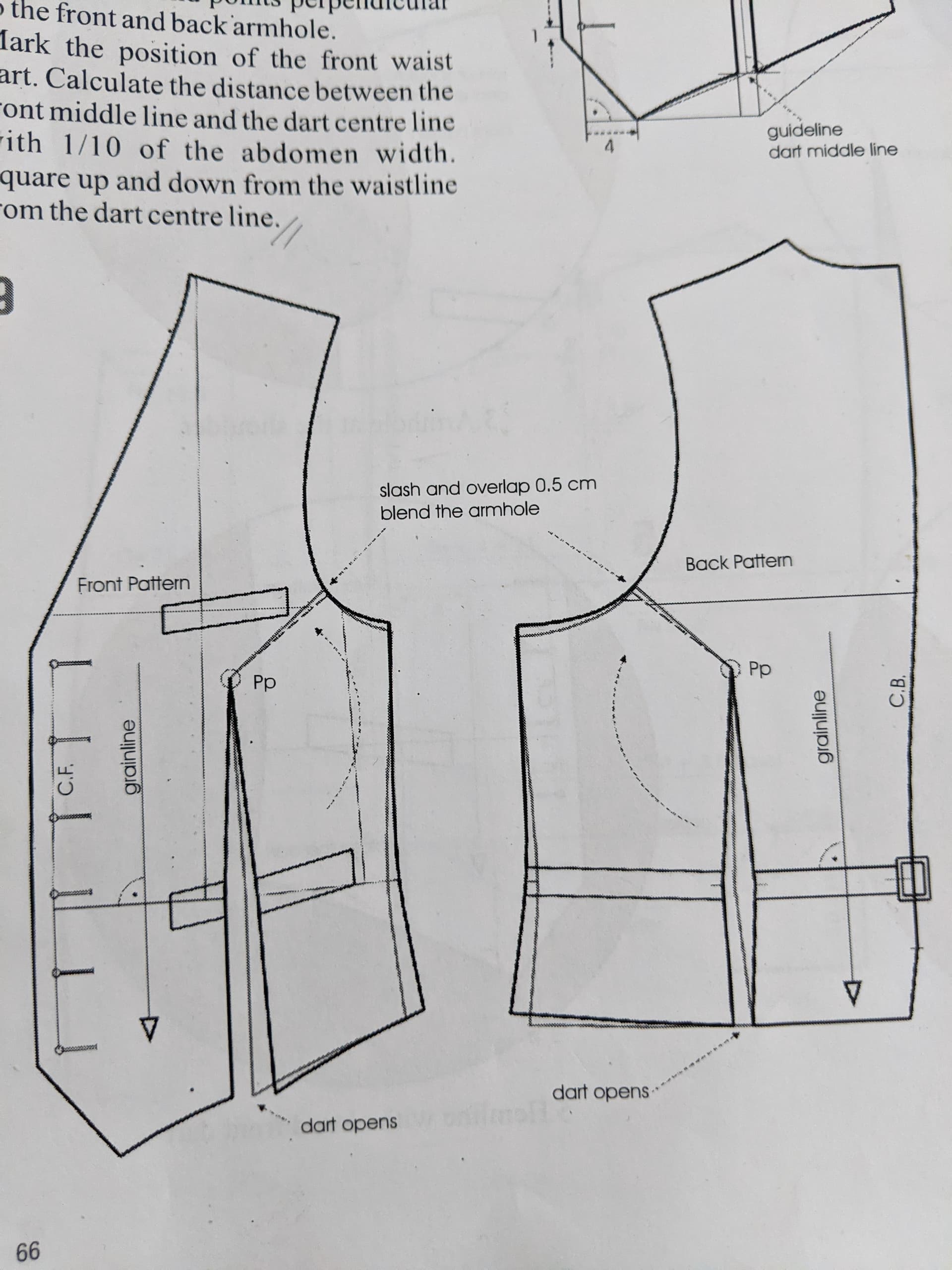 Ahhh. OK. I can see the idea behind it. To be honest though the angle of the cut from the dart point to the arm hole is not that critical… that is, what matters is the amount the cut is rotated and the resulting point of the botton of the armhole and the top of the sideseam. Besides… once you open or close the cut, the seam across the cut at the armhole will not be straight. The armhole (which in a vest is just a style line - vintage vests having a tighter armhole) needs to be trued up regardless if the cut is dead on perpendicular or not.