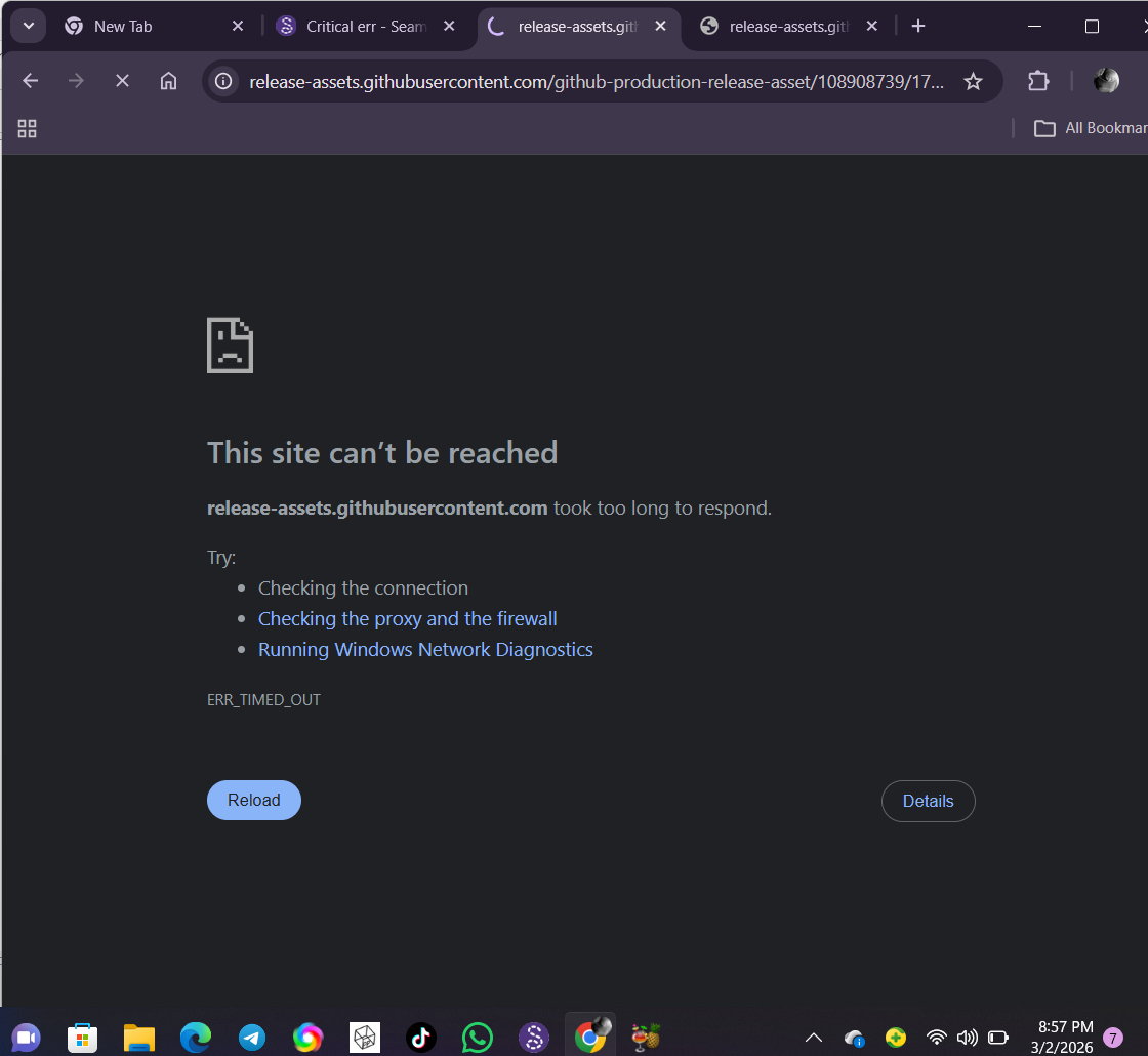 Once i click the link it opens, but the moment i click the download link for windows it will say the site can’t be reached.