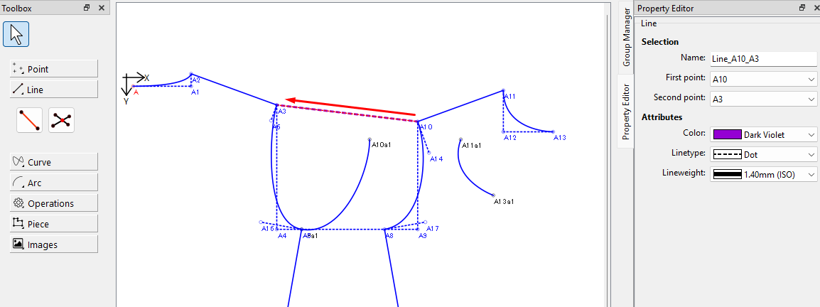 Bonjour, j’aimerai utiliser l’outil “déplacement d’objet” pour vérifier si mes entournures dos/devant on une bonne continuité. De même pour calculer la profondeur d’entournure, je dois “décalquer” une des deux entournures pour la placer sur la ligne de côté de l’autre pièce, hors lorsque j’utilise l’outil “déplacement d’objet”, je n’arrive pas à placer correctement la pièce car je ne comprend pas où se place le point de pivot/déplacement. Le point de déplacement (point bleu) se situe à droite d’un des points, si je clique entrée, il y a alors le choix de pivoter mais je n’arrive pas à placer les nouveaux points sur les points du côté DOS. Est ce qu’il y a une astuce? J’utilise mal l’outil?