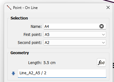 When creating a “Mid” Point - On line on the Line_A2_A5 the tool just uses the current length of the line, which is the same as writing Line_A2_A5.