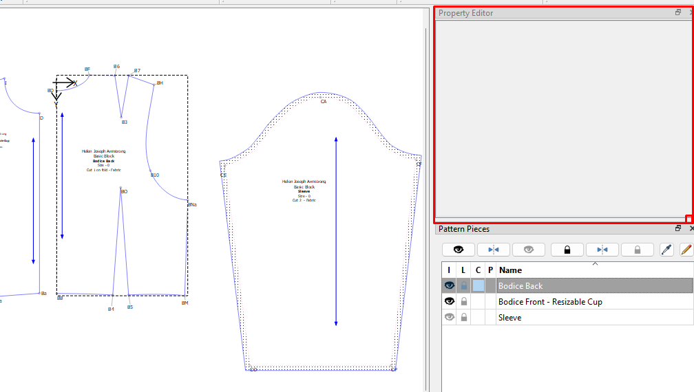 This way, instead of having to find the pattern piece on the drawing board, right-clicking on the piece and then selecting from the menu, we can just select it from the list and click on the eye.