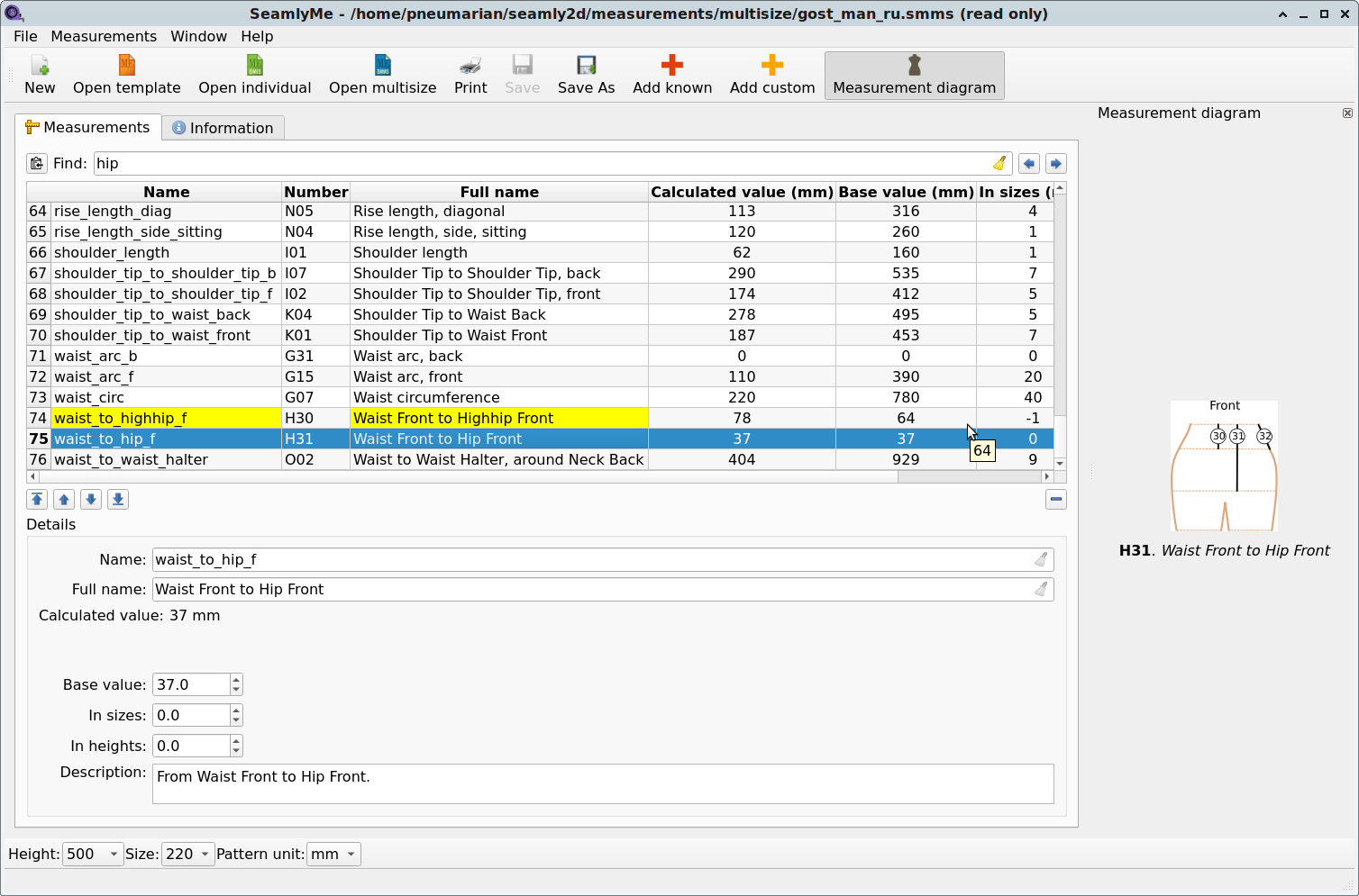After briefly considering just forcing it with manual measurement adjustments whether in the variables table or the pattern itself, I decided that it would be best to follow @Grace’s example & start with a multisize measurements file. I considered starting with a brand new file, & that might be a next step, but the GOST file is all ready, desperate to find use.