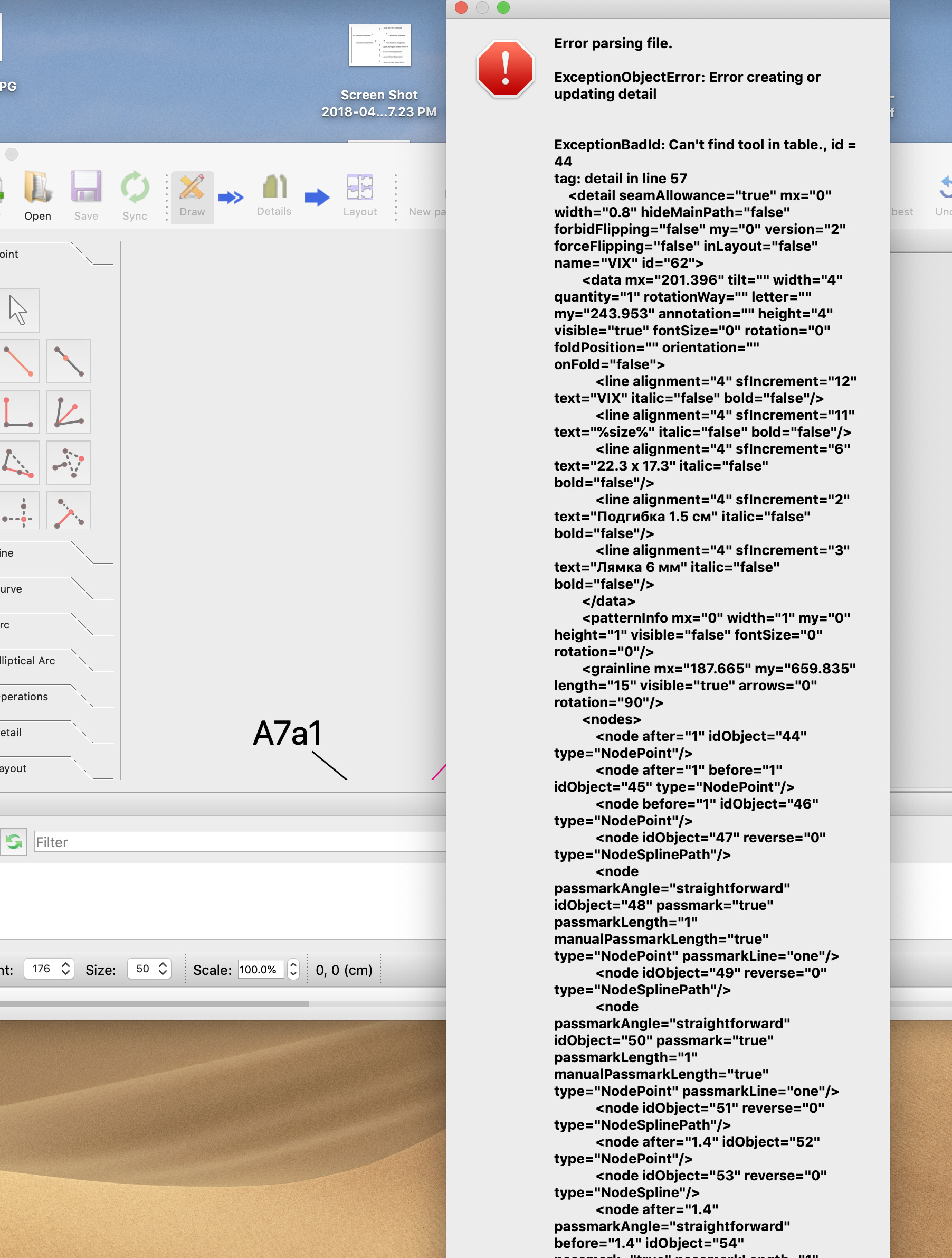 I did not build pattern in this version. Only amended my file with seam allowance. Trying to amend the curve I realised that it doesn’t reflect pattern on page Details. I closed the program. Next opening faced that Error opening