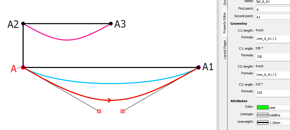 What this means is that when using interactive curves / splines you need to formulize the control points so the curves adjust to the measurements. To illustrate I made up 3 curves⦠Spl_A2_A3 (pink), Spl_A_A1 (blue) , and Spl_A_A1 (green). A-A1 is twice as long as A2-A3. The blue curve uses the same angles and fixed lengths as the pink curve for the control points⦠but as you should see itās not proportional to the pink curve.