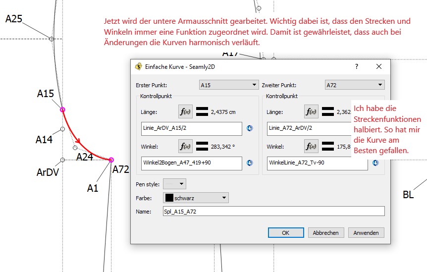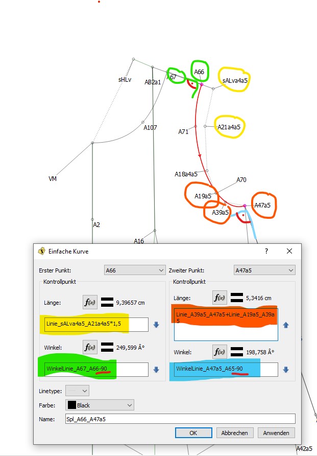 I’ve made it a habit to use formulas that either access the measurements, variables or parts of the pattern as much as possible, while drafting, specifically so that everything resizes correctly over various different sizes. Only in very special cases (or in the 1st few strokes) do I use a direct length or angle.