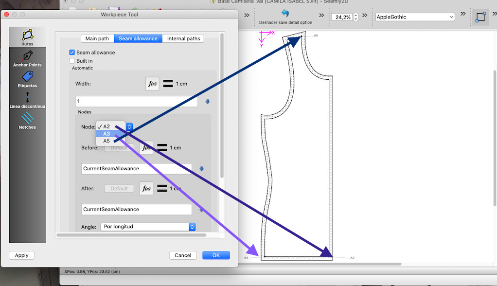 Hola @Malicat , mi dificultad es para agregar las costuras adecuadamente, hice una figura sencilla como para una camiseta y le debo eliminar las costuras en cuello y sisa, pero en el menu de las costuras solo me aparecen dos nodos