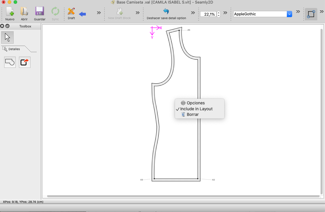 Hola @Malicat , mi dificultad es para agregar las costuras adecuadamente, hice una figura sencilla como para una camiseta y le debo eliminar las costuras en cuello y sisa, pero en el menu de las costuras solo me aparecen dos nodos :upside_down_face: