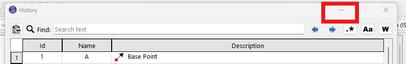 The History window is non modal - which means it can stay open while you still work on the pattern. Because It’s non modal it has the “minimize” button. At least on Windows. It will shrink down on the status bar. Clicking the maximize button opens it up again.