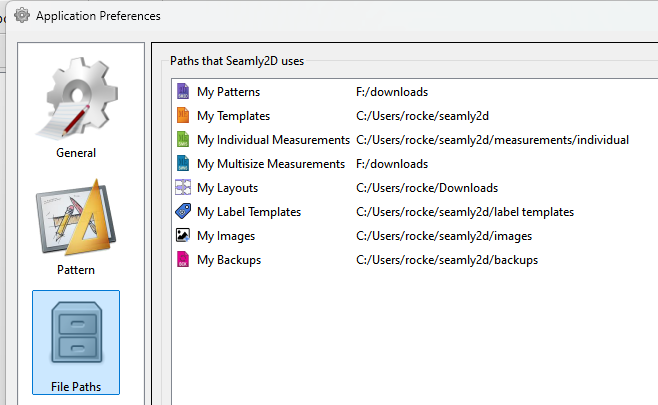 - I proceeded to update the File Paths pointing to the Seamly2D folder in my Documents folder in app preferences.