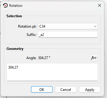 It should also be noted you can then use the new rotated points in other tools… or even apply another operation’s tool such as Move - although the Move tool has built rotate option. Moving a rotated point would then produce the new point name C12_a2_a3… or in my case C12_ROT_MOV.