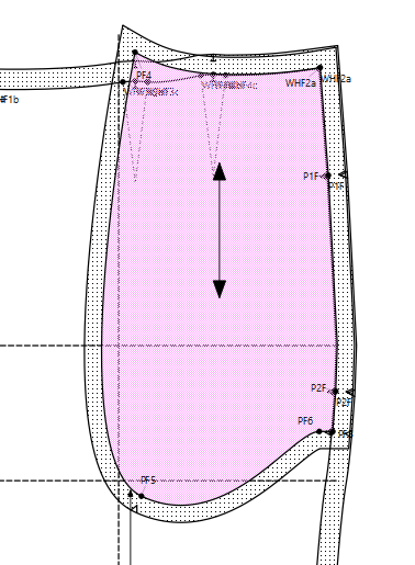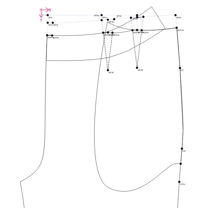 I have a variable that drops the waistline from the true waist by a custom amount, say 2cm. This is WHFa- constructed as a point on SplPath_WF2a_LnF5 (not an actual control point, just a point on).