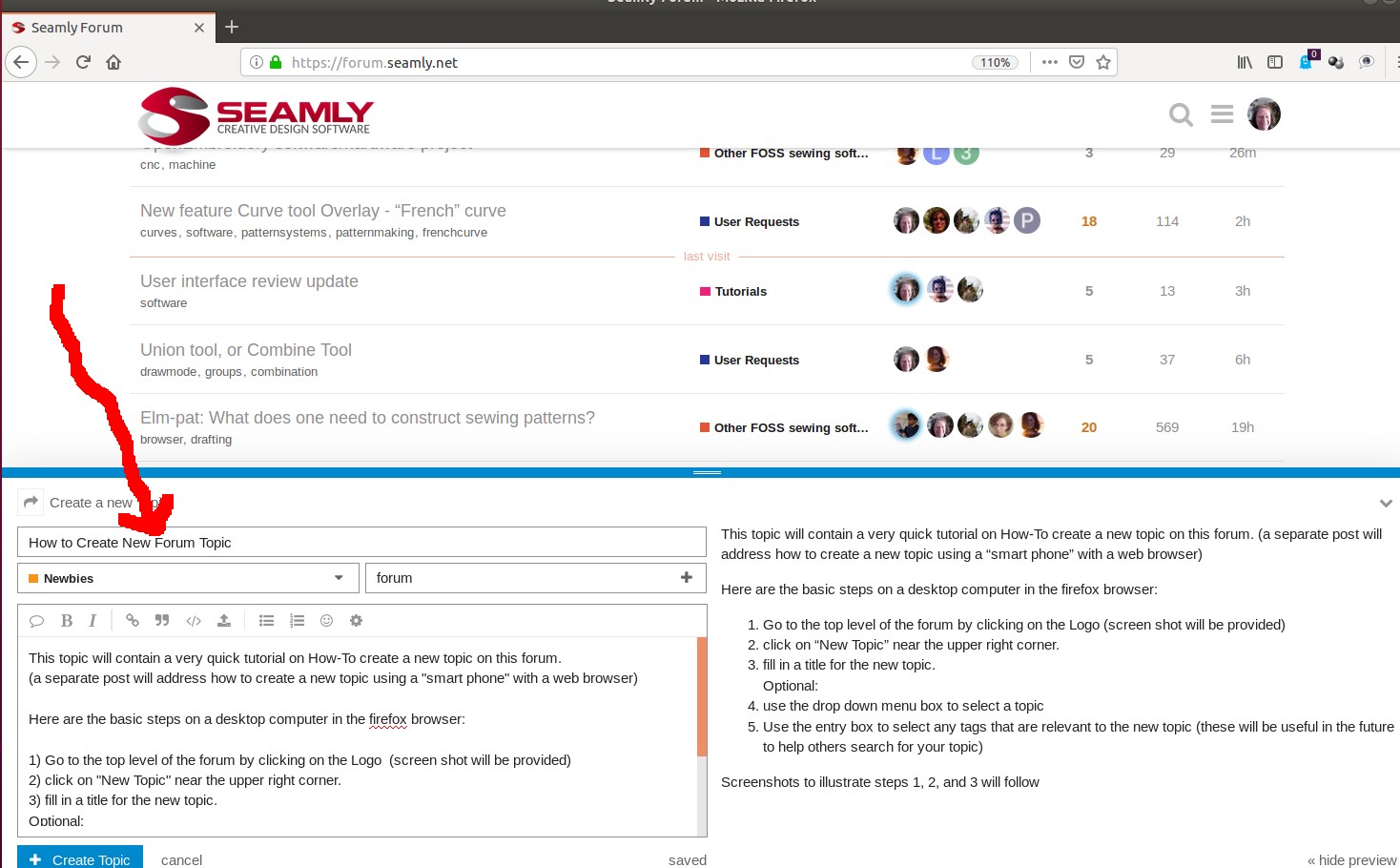 This topic will contain a very quick tutorial on How-To create a new topic on this forum. (a separate post will address how to create a new topic using a “smart phone” with a web browser)