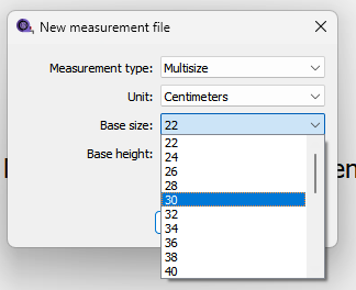 Then you have to add your (known) measurments for the base size value and the increment to increase or decrease from the base size. Again @Grace can probably explain better than I can how to configure your basesize and increments.