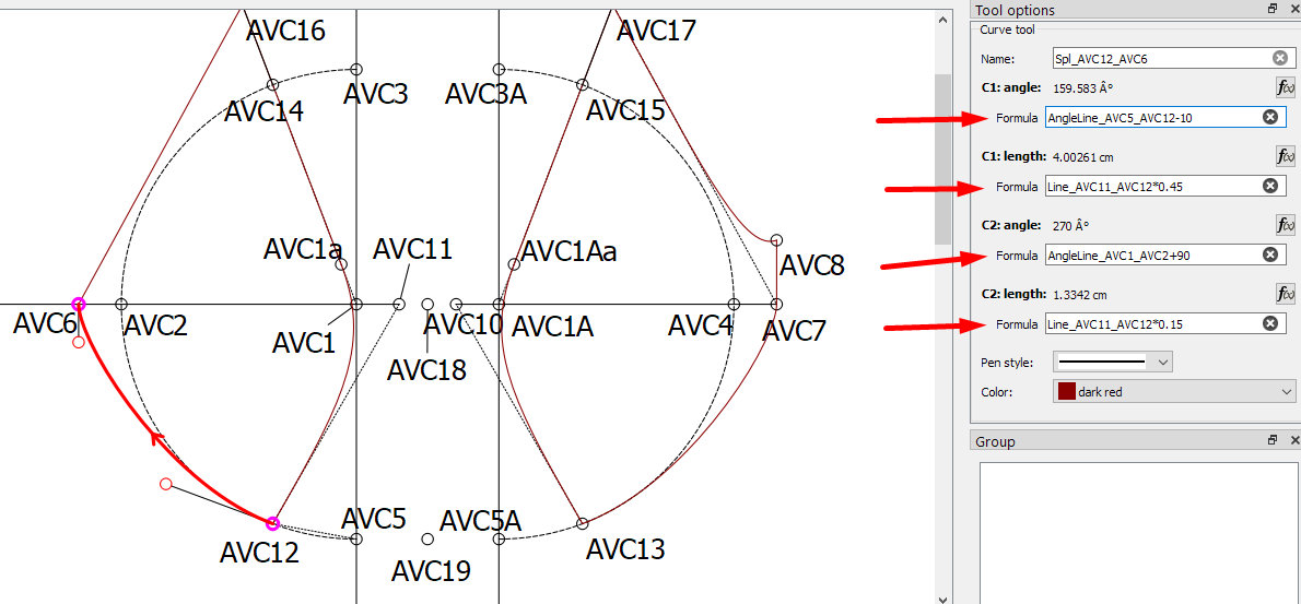 Which formula should I use to get these curves so that they change when I use a different bra size? And that the curvatures of the smallest size are proportionally equivalent to the largest size. It is important to the pattern that curvature AVC12 to AVC6 has a certain length as part of the entire stirrup line length.