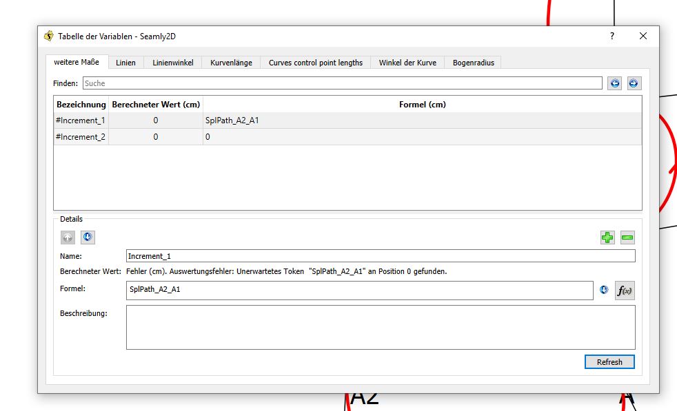I have a weird issue with the variable measurements feature. If I use a curve-length for a variable measurement ( in this case the length of the armhole for the construction of the sleeves) it will accept it at first but then will no longer find the dataset of the curve and say something of an unknown token. Am I using the feature wrong? I am at a bit of a loss. The problem stays the same with a new pattern document ( the screenshot is from that try )