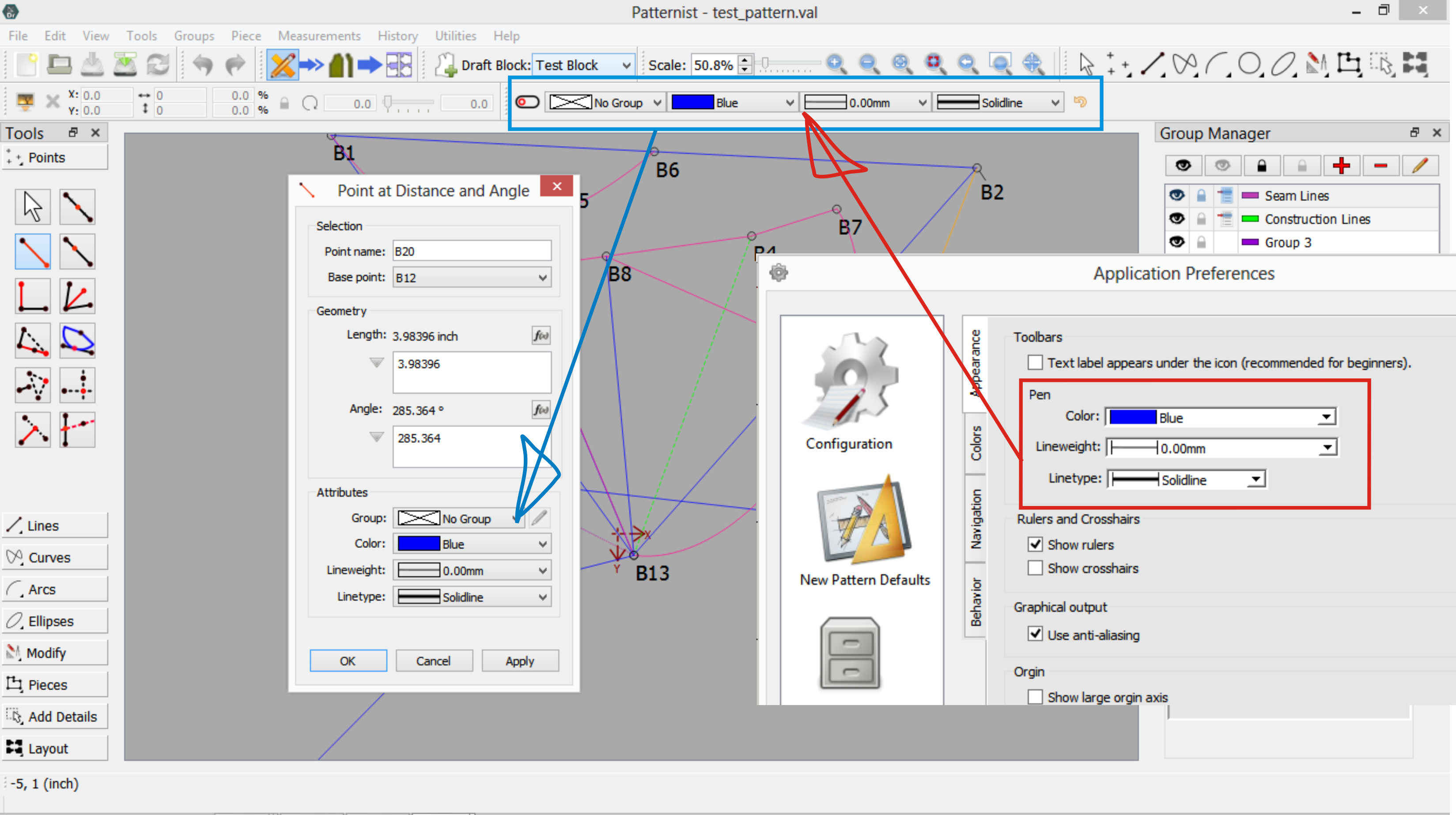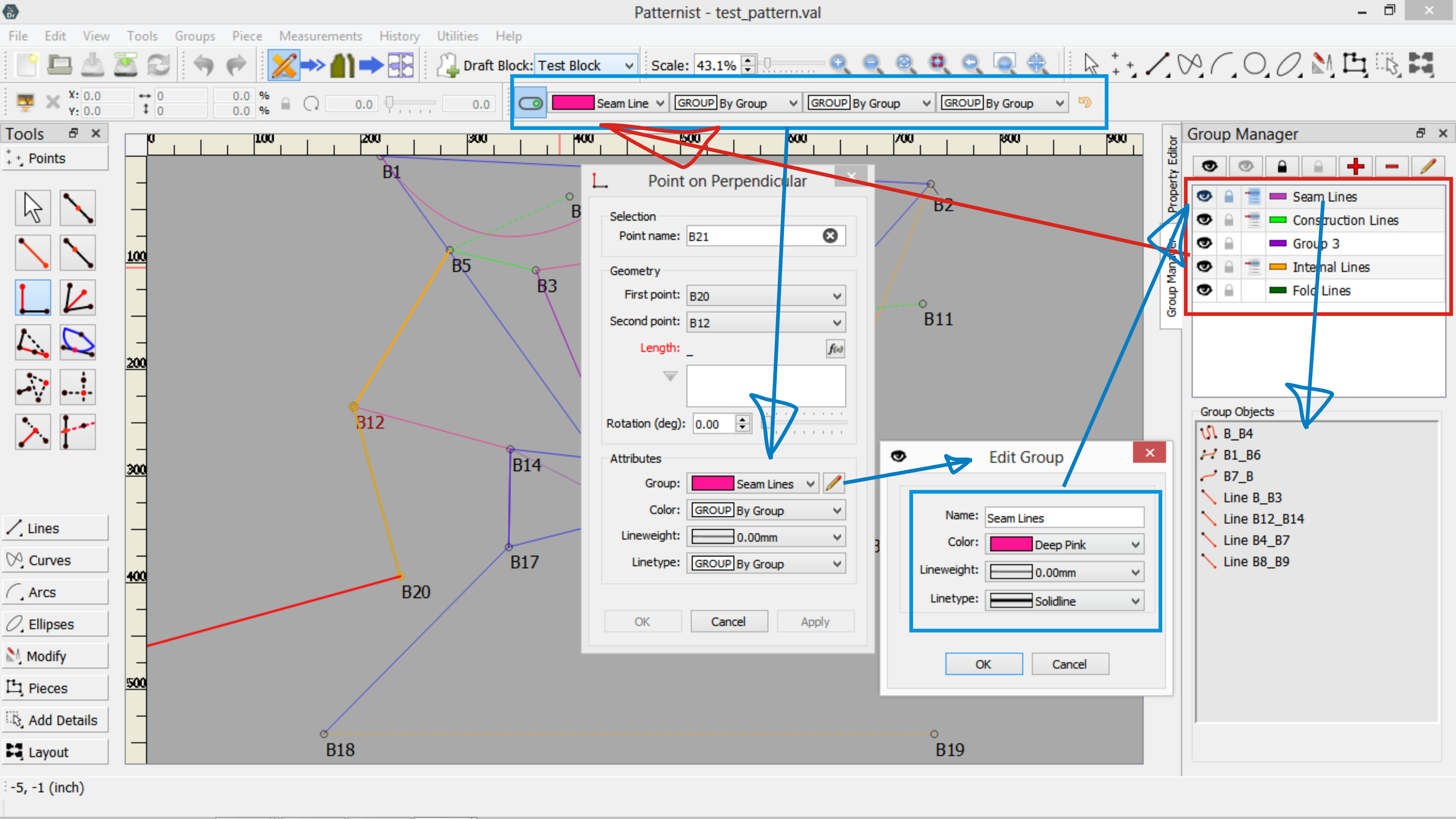 Once I finish work on the Point Name Text improvements… which still has one slight annoying bug I’m trying to squash before pushing the changes, and fix a sizing bug I discovered in the pattern piece labels that I thought was related to the label font - which I separated from the Point Name font - but turns out to be an existing issue non font related… I plan on updating all the tool dialogs which will include the addiion of a link to a new Pen Style toolbar that will address the issue of this topic. After that I will then add the improvement to the Groups. So… maybe a few weeks from now. provided I don’t get side tracked with some other bug issues.