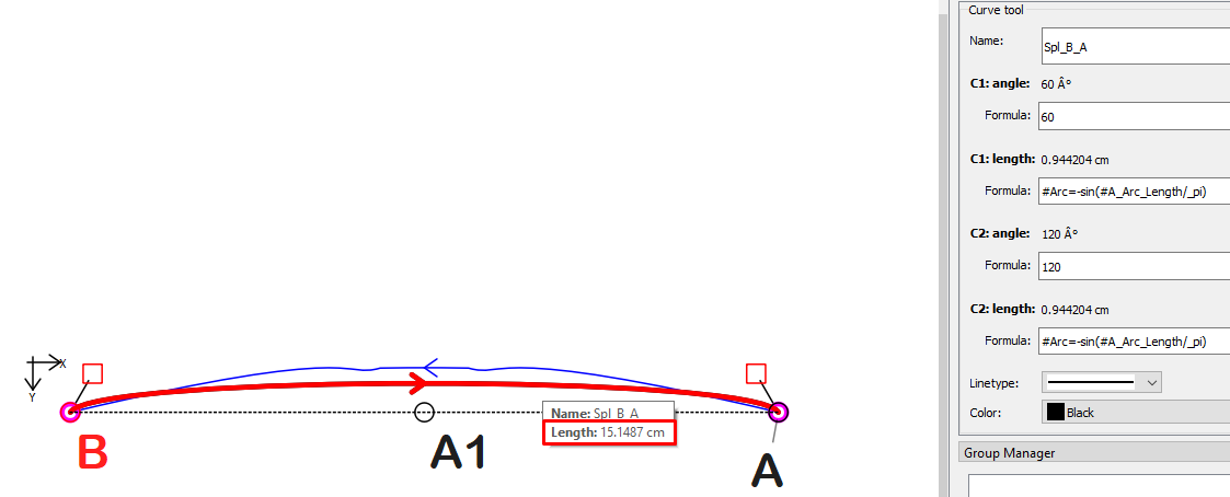 I want to make a curved line between two points and I want to be able to use a measurment formula added in seamlyme so that the curve will match the measurment. Is that possible?