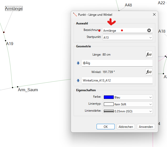 Appart from line names like this a nice feature could be to have an option from placing standalone notes or labels, similarly for documenting design choices in the pattern file.