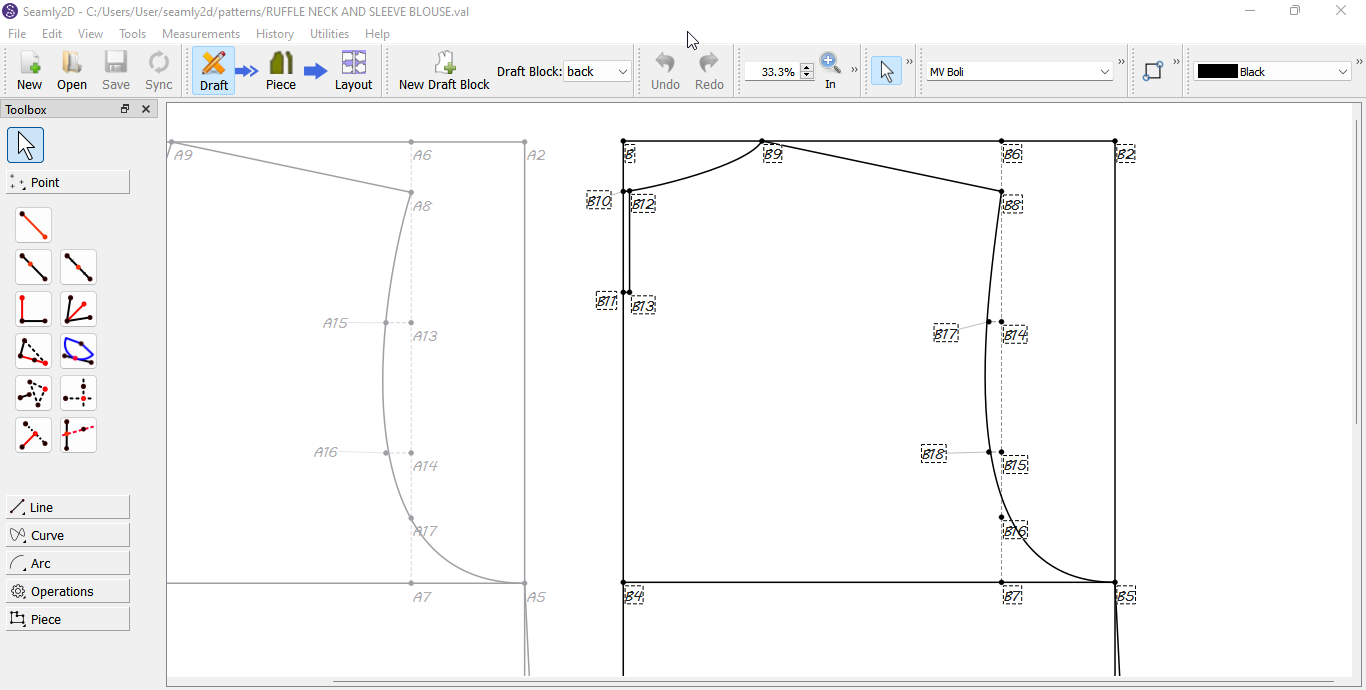 However, I highly recommend figuring out what the formulae behind the given dimensions are, so that you can use Seamly effectively, &, more importantly, expand your feel for why the book drafts have the given line lengths.