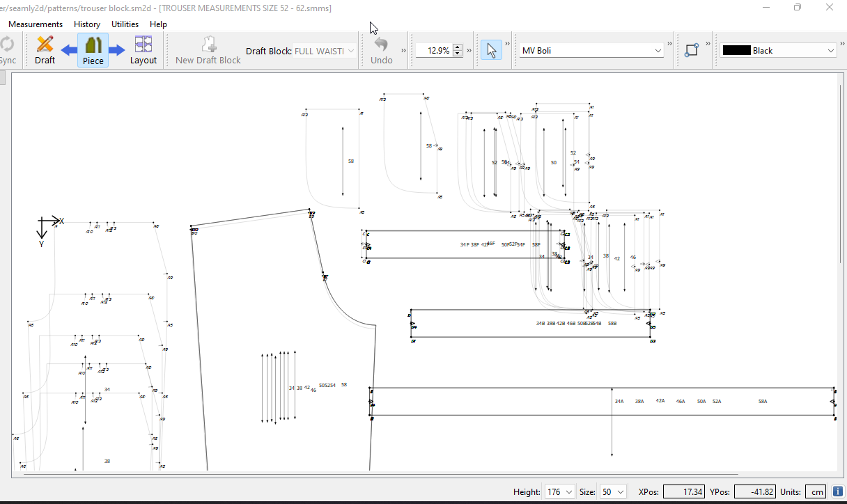 But if all you want to do is copy the dimensions of the pattern as given, & compile them in a single file, I suspect that you’d be better off just doing the whole thing in Illustrator, because if you want multiple sizes in one Piece mode instance, you’ll need to re-draft it separately at all sizes anyway.