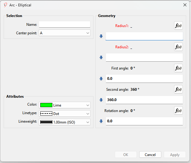Added the 0 and 360 default angle values for the Arc - Radius and Angles: