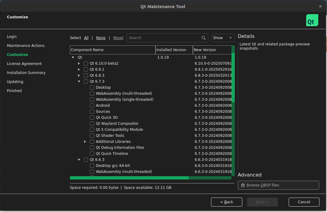 You’re going to need to update Qt through the Maintence tool. The current ver available is like Qt 6.9.1… which you can use, but for now I’d avoid using anytning newer than 6.2.4.