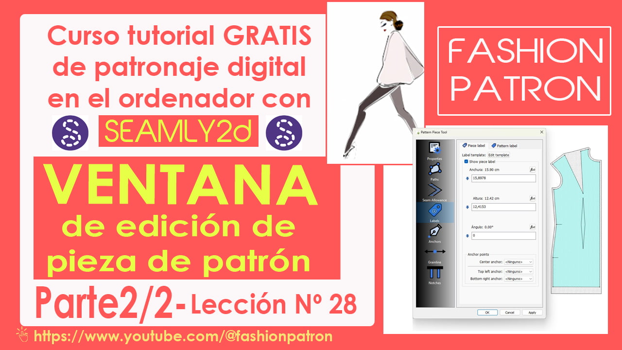 Video 28. Hacer patrones en el programa Seamly2d Ventana de herramientas de edición de piezas de patrón. Se describe como aplicar la herramientas para crear y completar el patrón marcando : etiquetas, puntos de anclaje, piquetes y dirección del hilo.