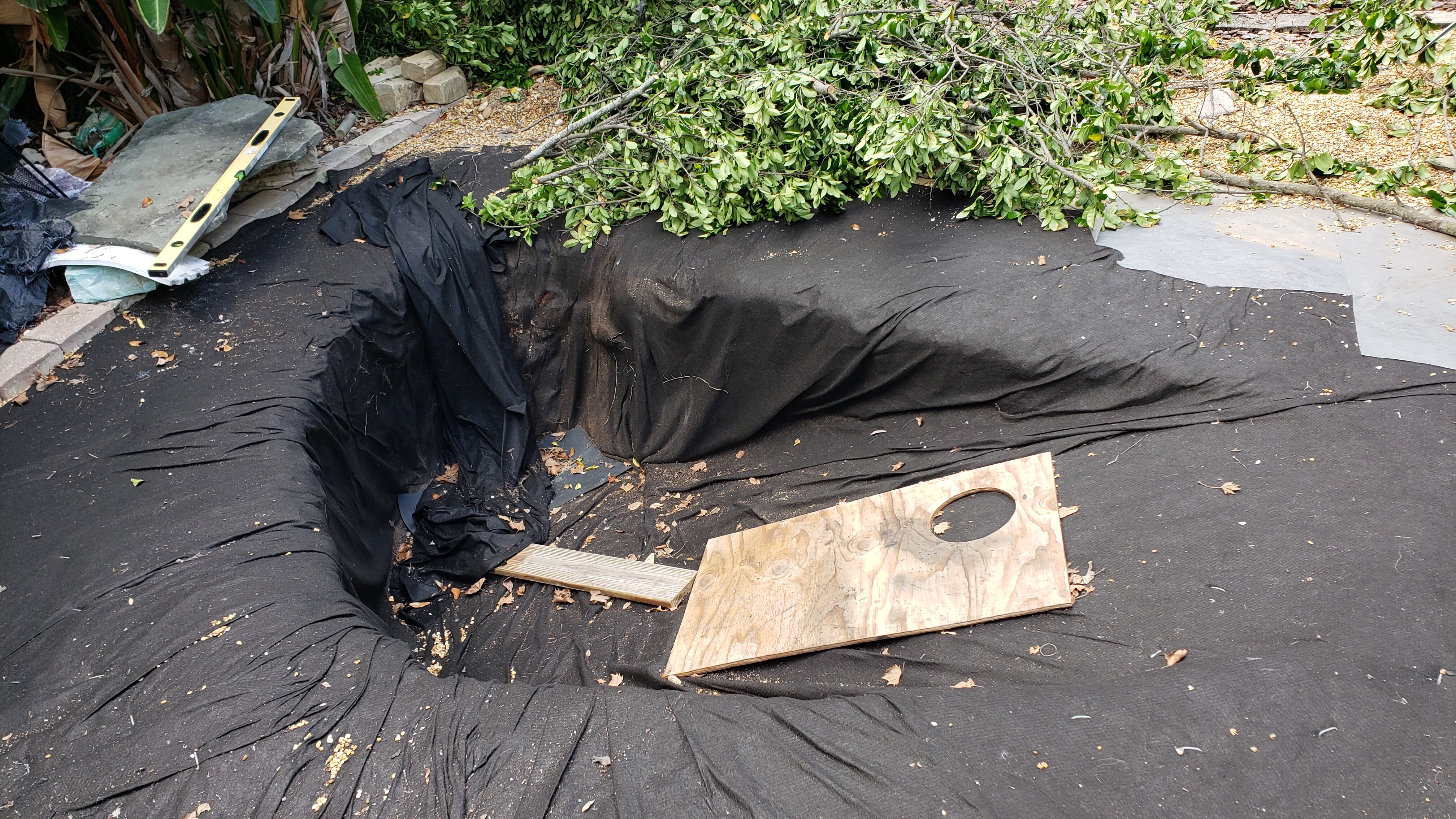 you can see the wrinkles in the original underlay, a felt-like fabric. I bought another of those for padding and support. other projects have bubbled to the surface, I’m glad this info will spur it back forward. I’m whipping up a 10ft arched bridge outta 2x12 pressure treat, and cedar slats, be nice to have water under it