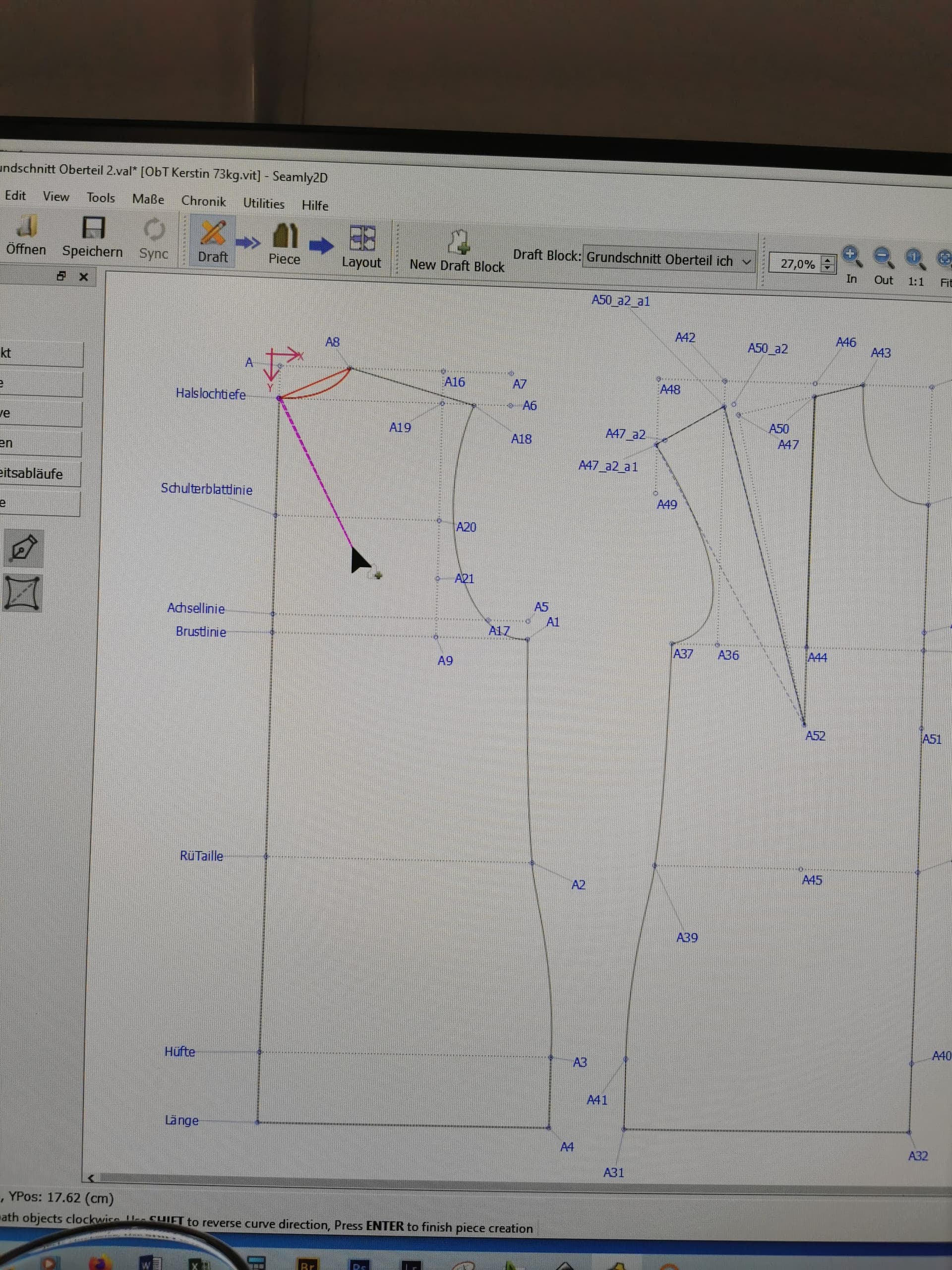 I have now created a visually usable basic pattern. Unfortunately, I fail with the Pattern Piece tool. For example, when I try to curve around the back piece, seamly2D doesn’t take the curves correctly.