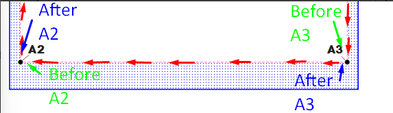 Since the piece of string in question 1) is attaching to the pegs in a clockwise direction, A3 is approached first, so before A3 is default while after A3 is 2.5, then the piece of string approaches A2, so before A2 is 2.5, while default is after A2.