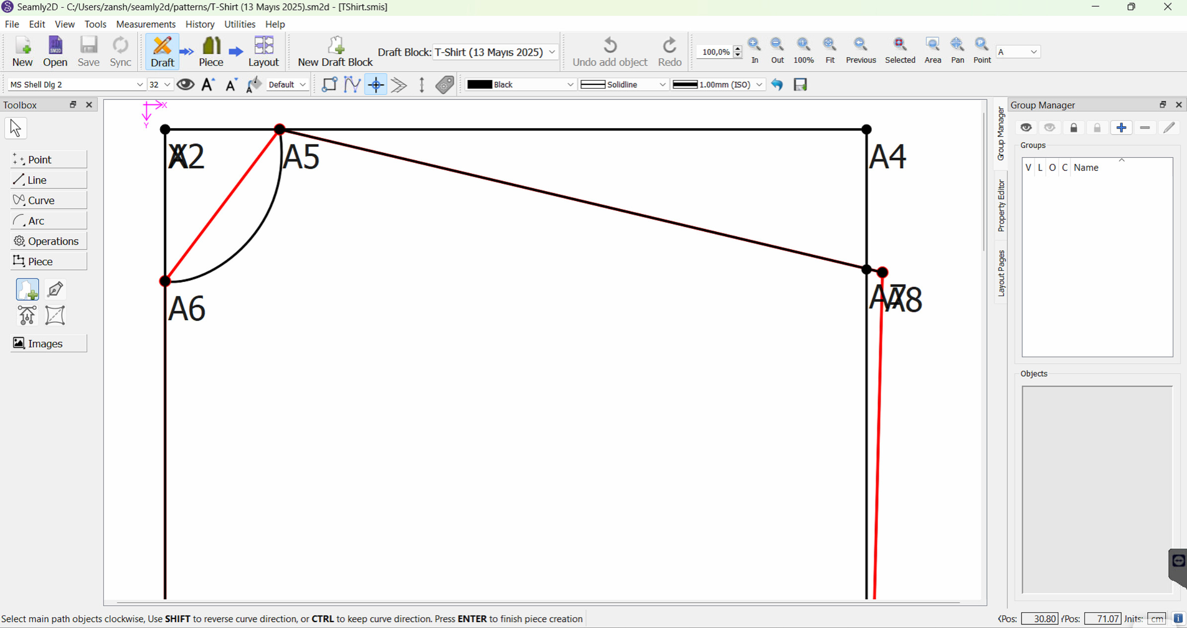 In regards to pattern pieces the path direction is always clockwise. A curve may be drafted in Draft mode counter clockwise, but it has to be reversed in Piece mode so it’s points then go clockwise.