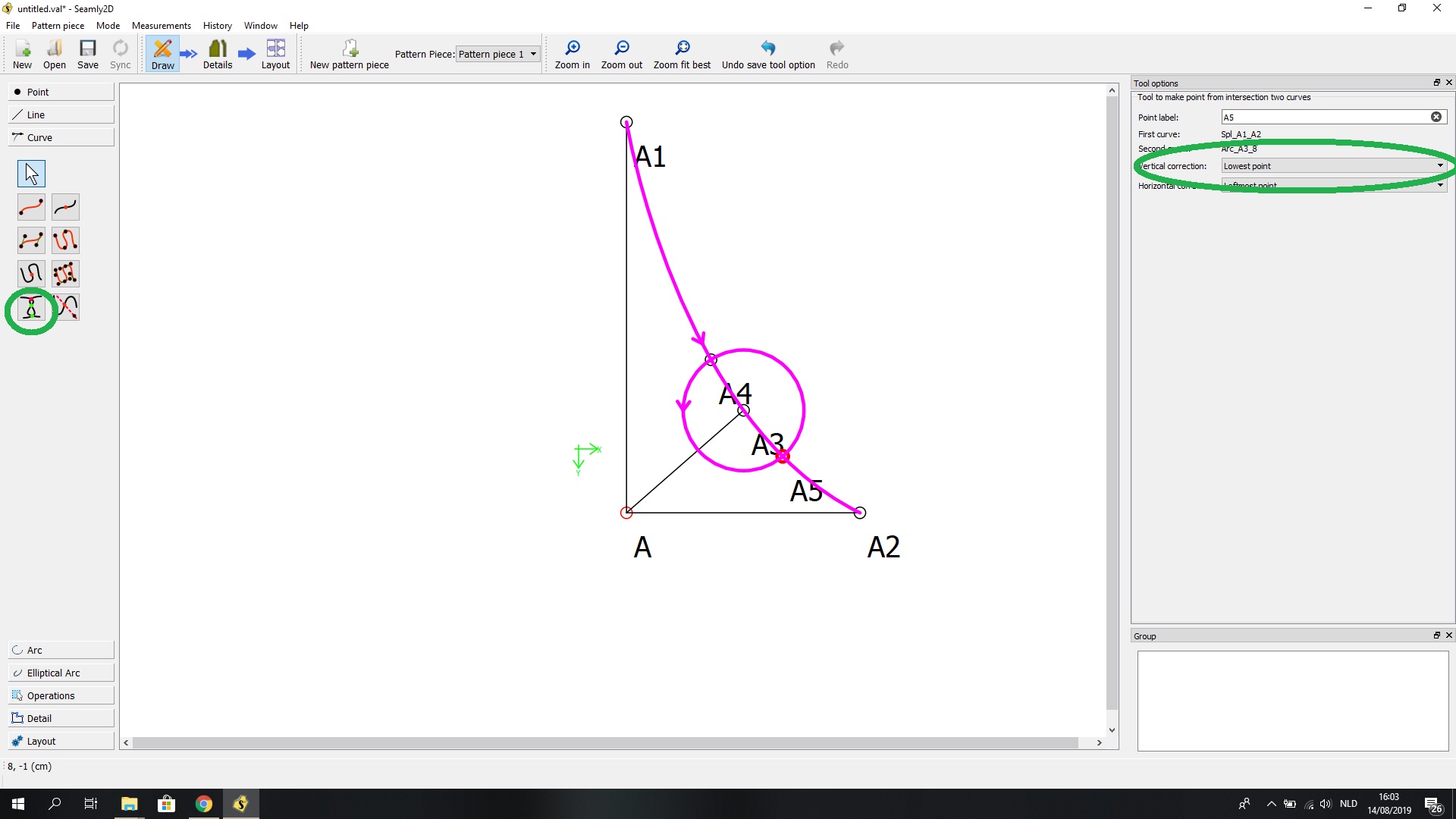The strategy here @dogwooddenim is to use the circle points as a basis of an armhole dart. I am not very experienced in pattern making or using Seamly 2d, so maybe there are better ways of doing this . But that was my thought anyway