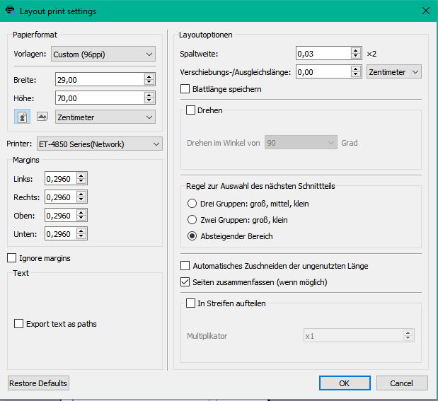 Yes, the “Ignor margins” is activatet, and the result is worse than without.