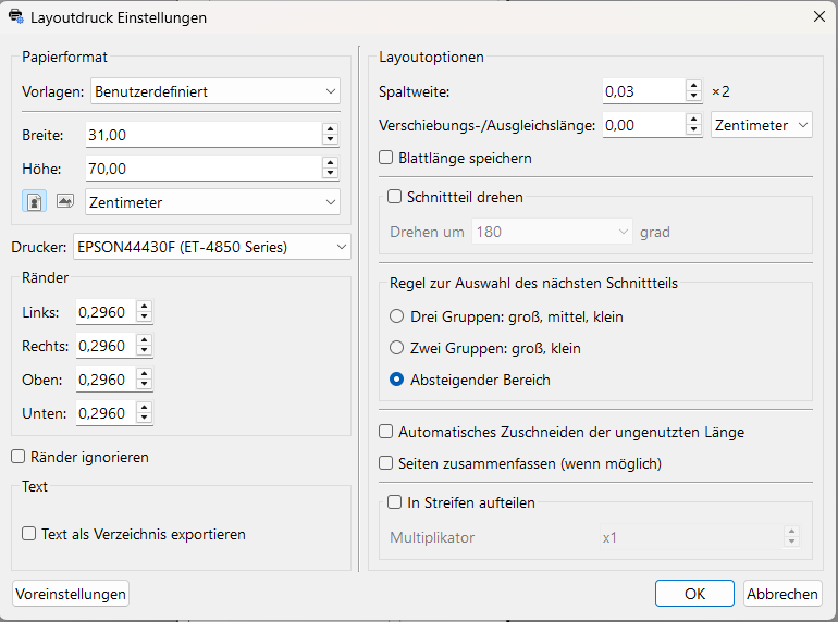Dear Douglas, I have the older version (2025_04) installed under Windows 10 on the old laptop and the latest version under Windows 11 on the new laptop. Here are the printsettings of both versions: